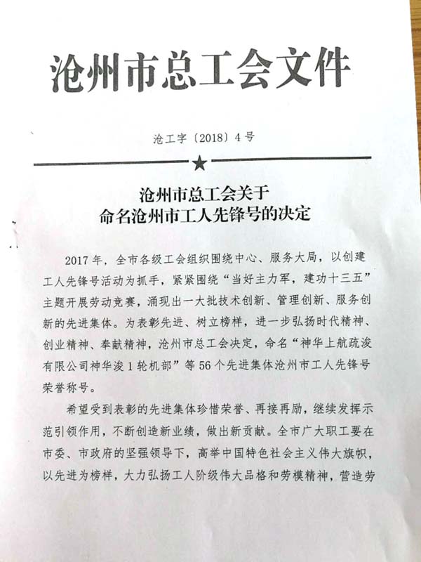 鑫狮公司成功取得工人先锋号荣誉证书